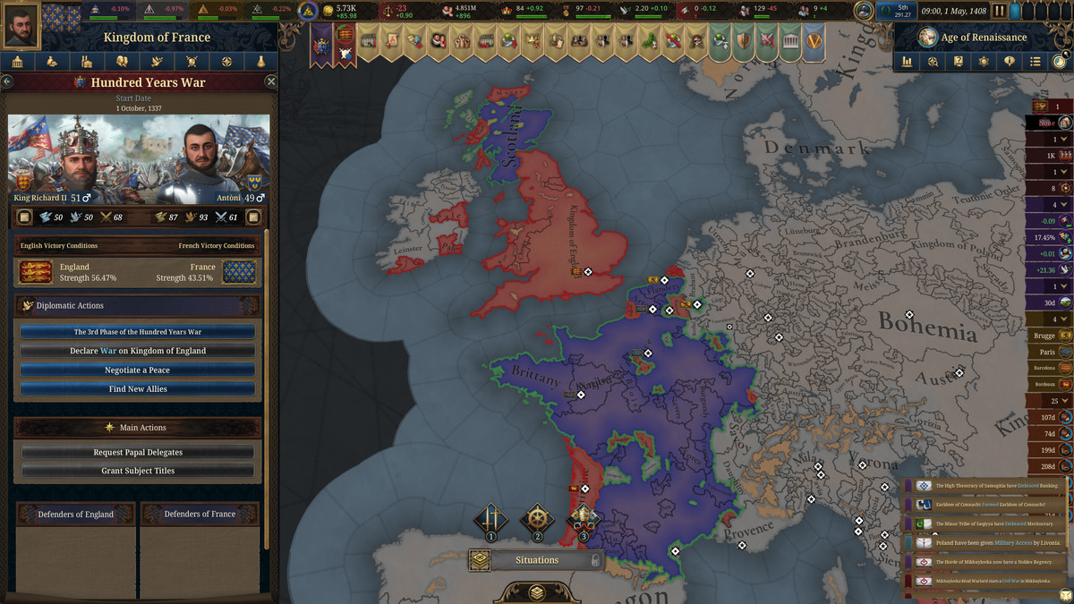 Глобальная стратегия, в которой геймеру придется провести свою страну через череду исторических эпох. Точкой отсчета станет апрель 1337 года, незадолго до того, как мир поглотила Столетняя война. Не самое простое время для начала, однако будет чем заняться. Финалом же истории окажется 1837 год — тогда на трон взошла королева Виктория.