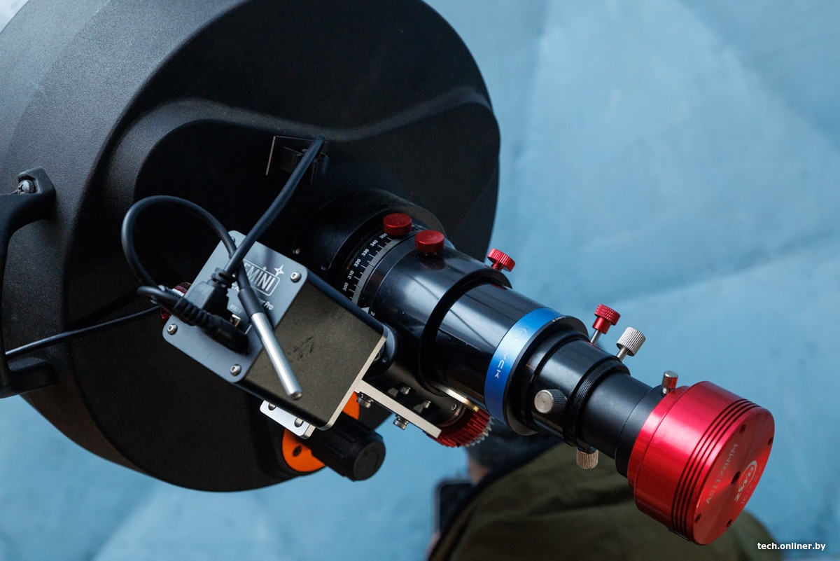 — Здесь у нас стоит телескоп системы Шмидта-Кассегрена с апертурой 280 мм и фокусным расстоянием 2800 мм. Он может обеспечивать большое увеличение, чтобы видеть объекты далекого космоса, планеты, различные яркие объекты. Он предназначен больше для астрофотографии, но и простые наблюдения через него делать тоже, конечно, можно.