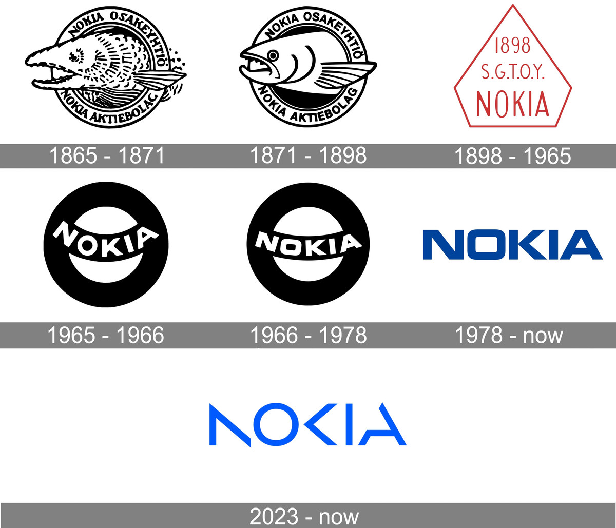 На первом логотипе организации была изображена рыба, отсылающая к реке, на которой стояла фабрика, а словом «nokia» называли темного пушистого животного, которое известно как лесная куница.