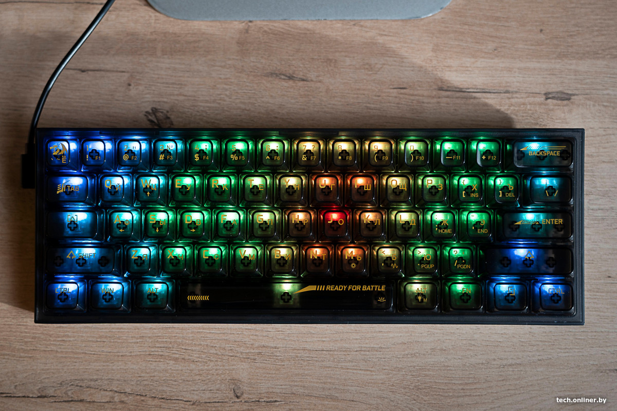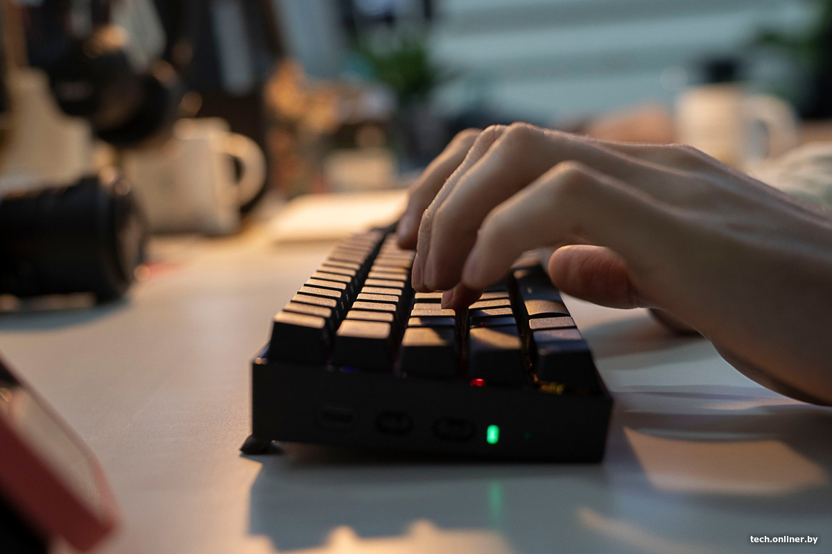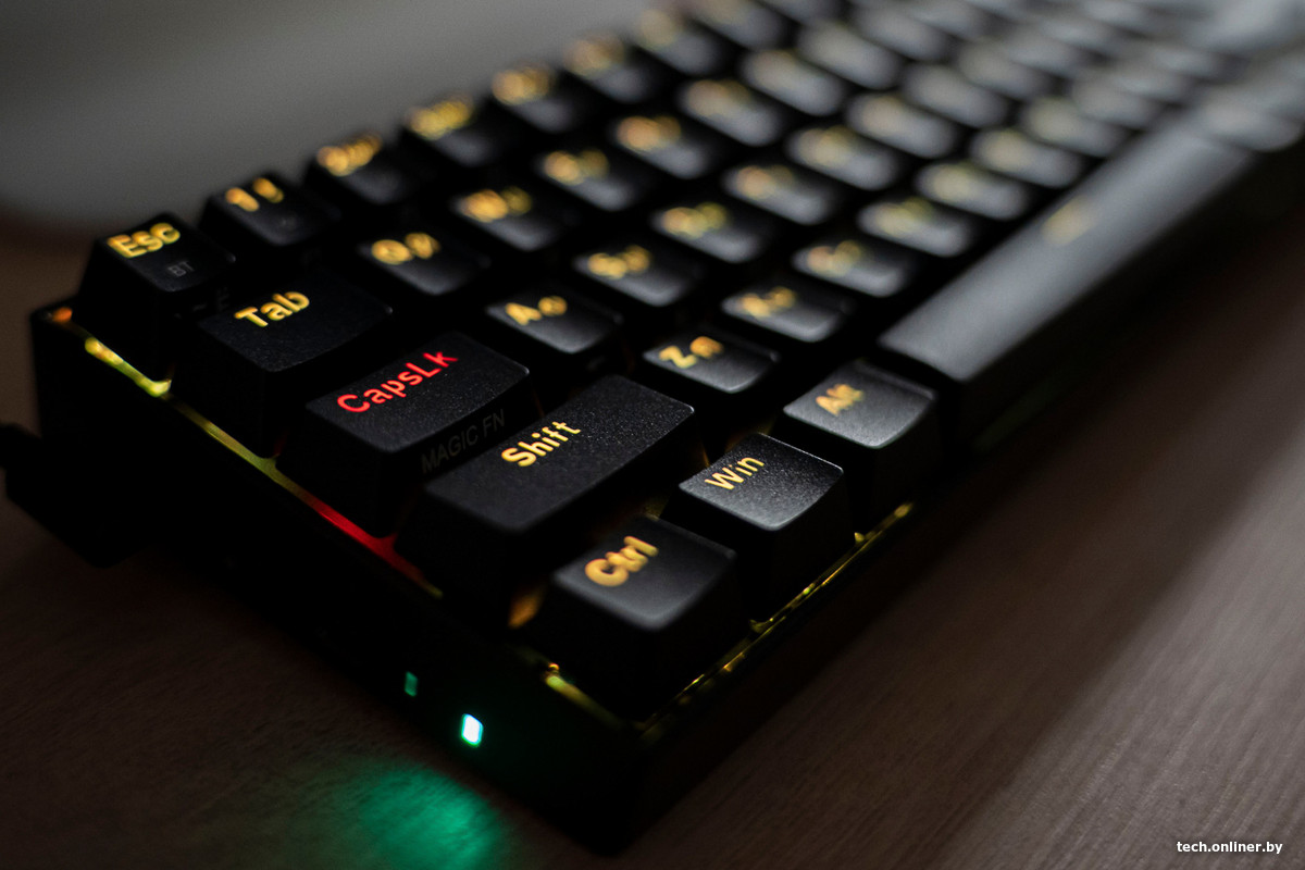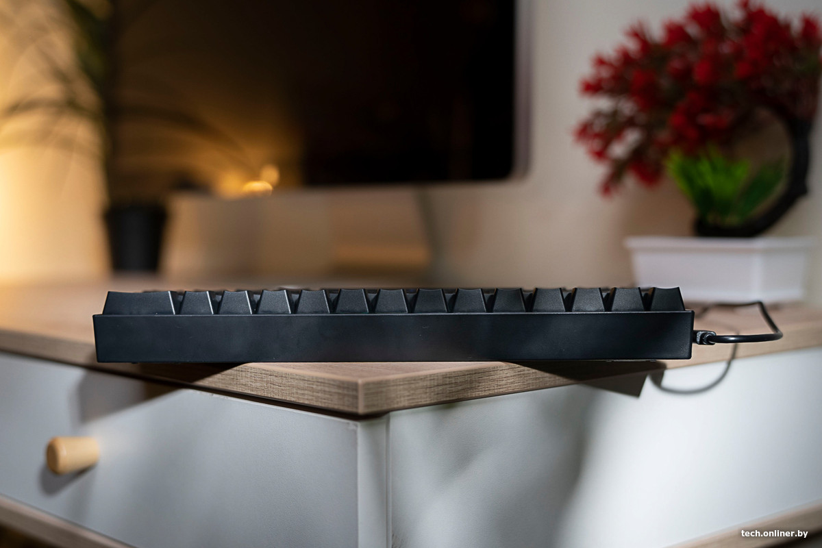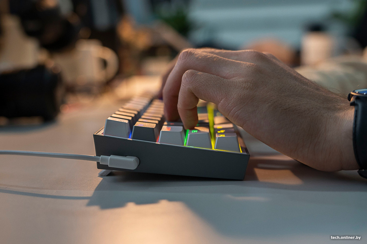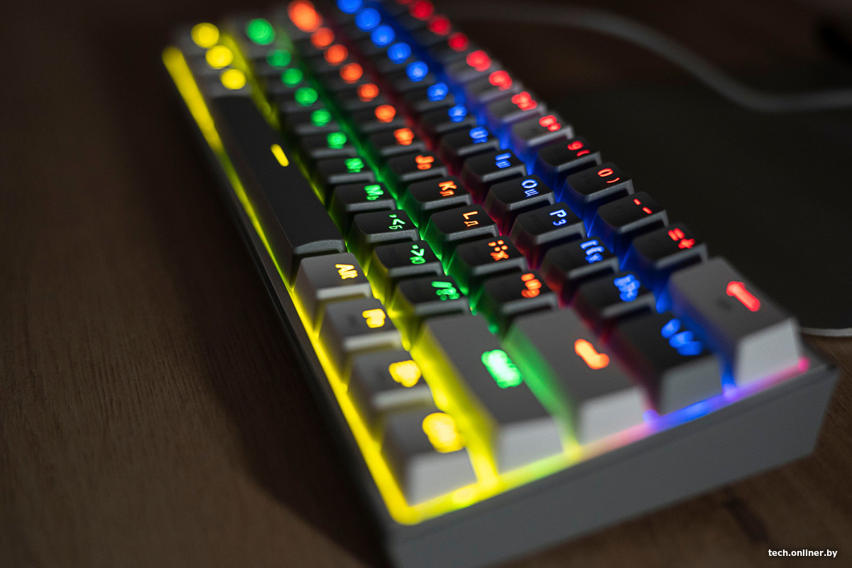 • Royal Kludge R65. В модели установлены кликающие свитчи RK Brown, предусмотрена управляемая RGB-подсветка клавиш, однако подключается клавиатура только по проводу.
