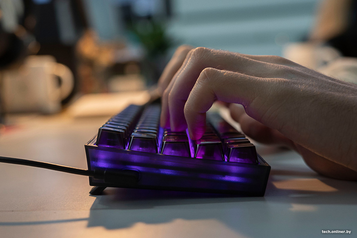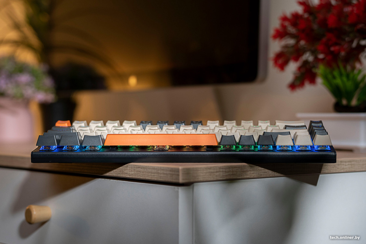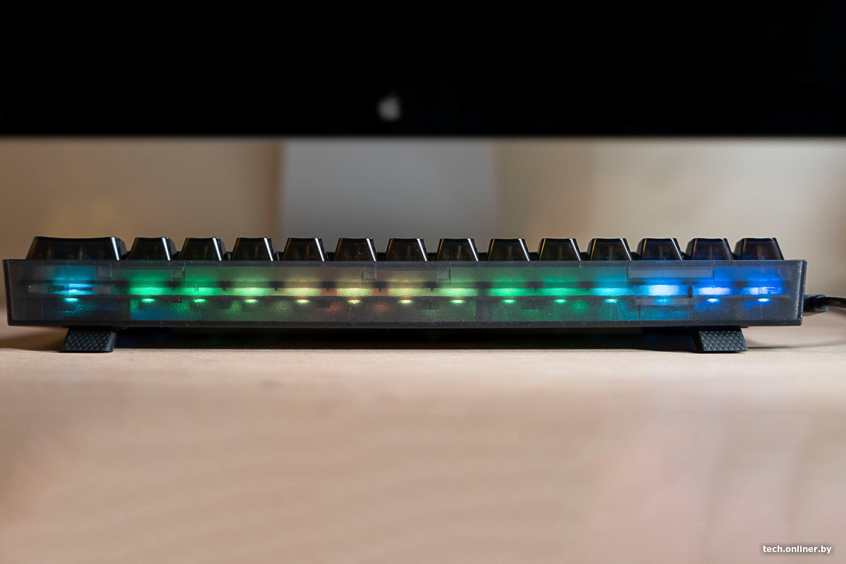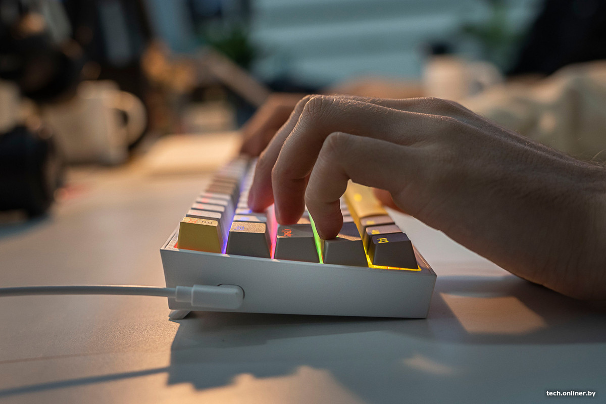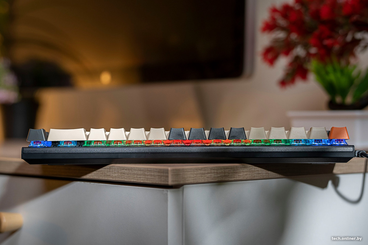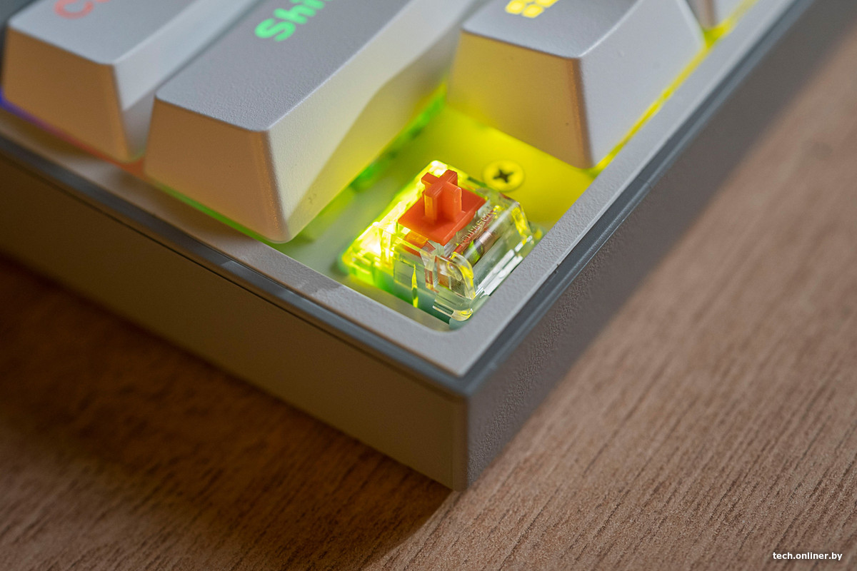 • Royal Kludge R65. В модели установлены кликающие свитчи RK Brown, предусмотрена управляемая RGB-подсветка клавиш, однако подключается клавиатура только по проводу.