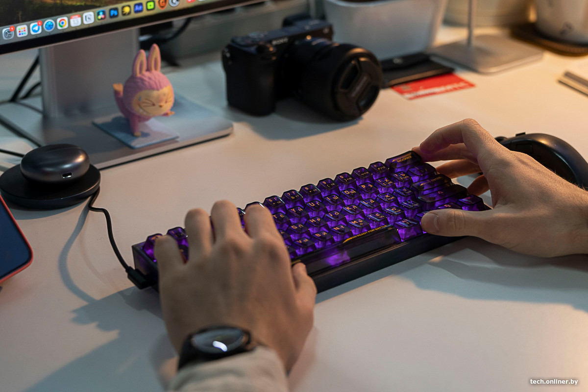 • IO by Red Square Typex SE. В клавиатуре установлены свитчи g3ms Sapphire — очень тихие и с мягким ходом клавиш. Подключение проводное, а кабель несъемный — в 2025 году это уже выглядит как рудимент.