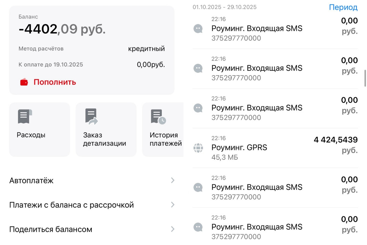 По версии белоруски, которой та поделилась в соцсети, она «не пользовалась интернетом, не звонила, не писала СМС». Впрочем, абонентка не отрицает: «У меня соскочил на пару секунд режим полета, потому что я пыталась отключить роуминг в настройках телефона». Дело, как дополняет девушка, произошло в октябре в Египте.
