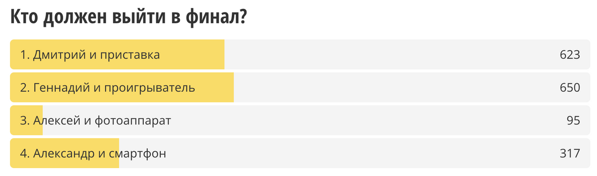 Среди четверки финалистов вам необходимо определить трех победителей — голосуйте за наиболее понравившуюся историю и гаджет. А итог подведем завтра, 19 декабря.