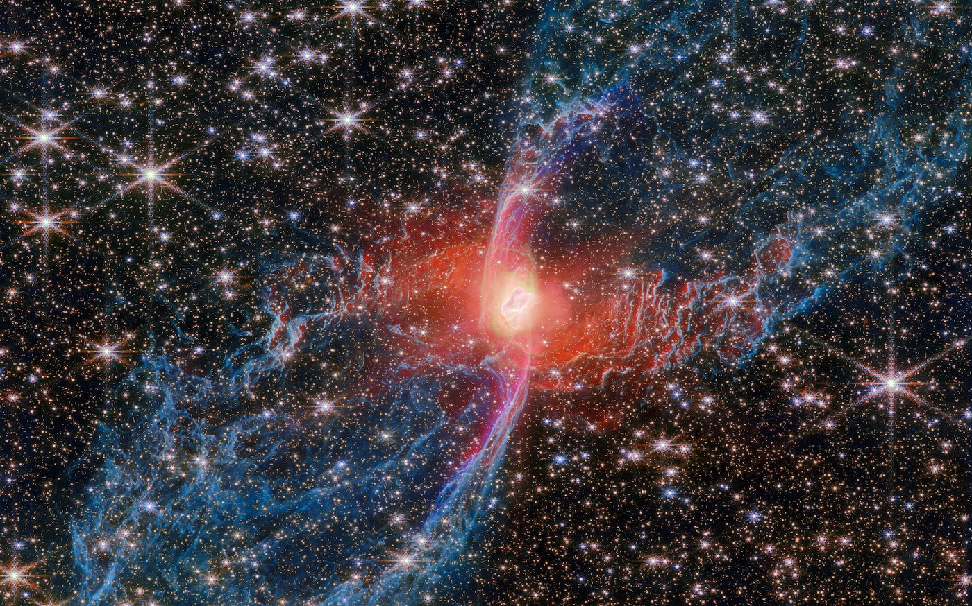 Такие планетарные туманности образуются, когда умирают звезды, подобные Солнцу. Перед гибелью они во много раз увеличиваются в размере, а затем обнажают свои раскаленные ядра, выбрасывая внешние слои в космос. На этом снимке туманности Красный Паук ультрафиолетовый свет от центральной звезды ионизирует выброшенное вещество, заставляя его светиться. Фаза планетарной туманности в жизни звезд столь же мимолетна, сколь и прекрасна, и длится всего несколько десятков тысяч лет.