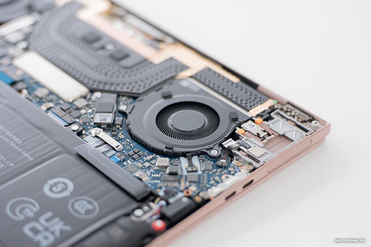 Для охлаждения устройства в ноутбуке используется испарительная камера: технология, благодаря которой тепло внутри рассеивается равномерно и более эффективно, нежели при использовании классических тепловых трубок.