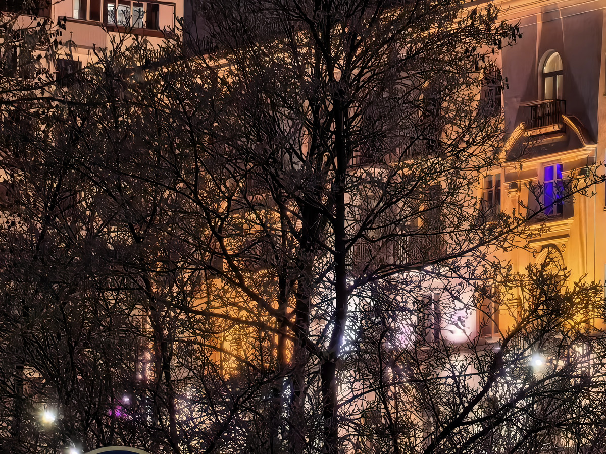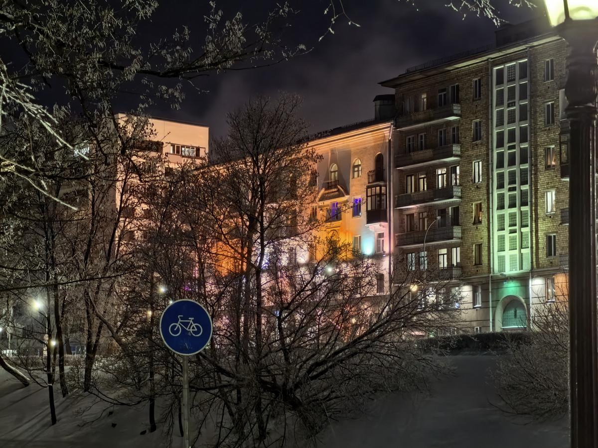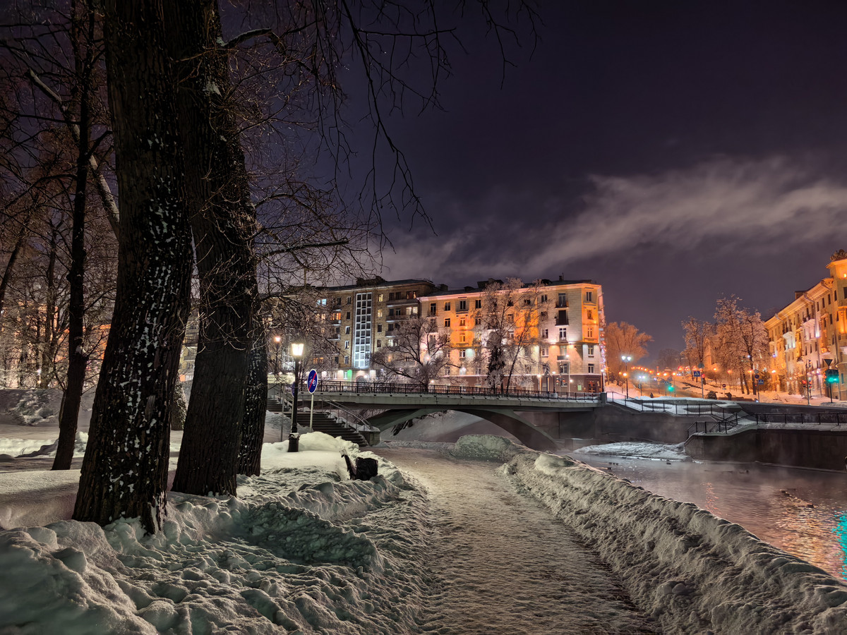 Отдельно стоит отметить ночную съемку. Благодаря увеличенному сенсору изображения выделяются детализированными текстурами, отсутствием ореолов и бликов от источников искусственного света. Фотографии с увеличением, сделанные вечером, остаются годными, хотя, на наш взгляд, слегка теряются: детализация ожидаемо становится ниже (хотя для «раскладушки» все еще хороша).