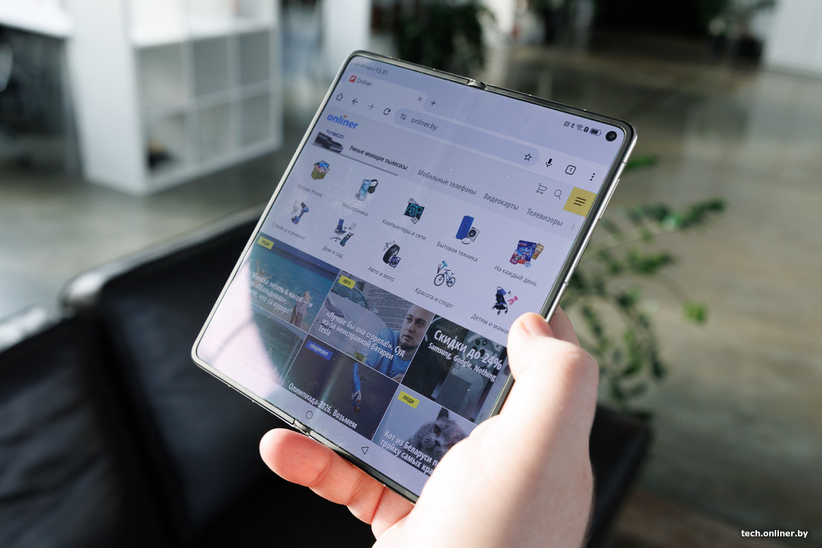 Внутренний экран также хорош. Но «складка» посередине полностью не ушла, хоть и стала еще менее примечательной — под углом, на светлом фоне разглядеть ее возможно. Традиционно внимания на это в обычной жизни обращаешь мало.