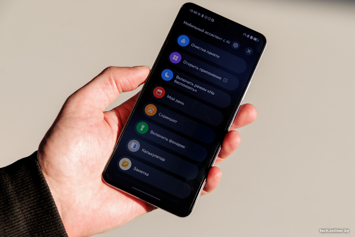 А вот левый торец вопреки привычкам также задействован. Здесь есть еще одна кнопка, вызывающая «Мобильный ассистент с AI». Сейчас модно связывать с ИИ почти все, а если же по старинке, то это клавиша вызова дополнительного меню. По умолчанию здесь есть свой набор вызова функций, кнопки, помимо одной, переназначить нельзя.