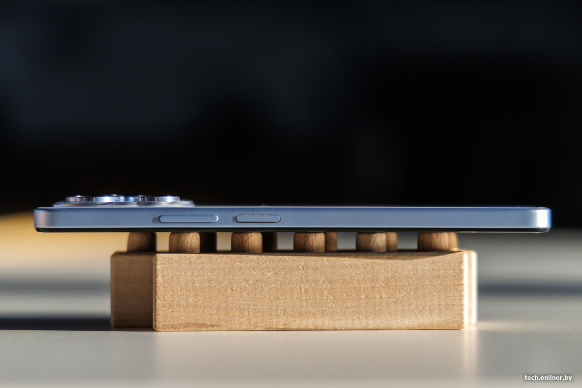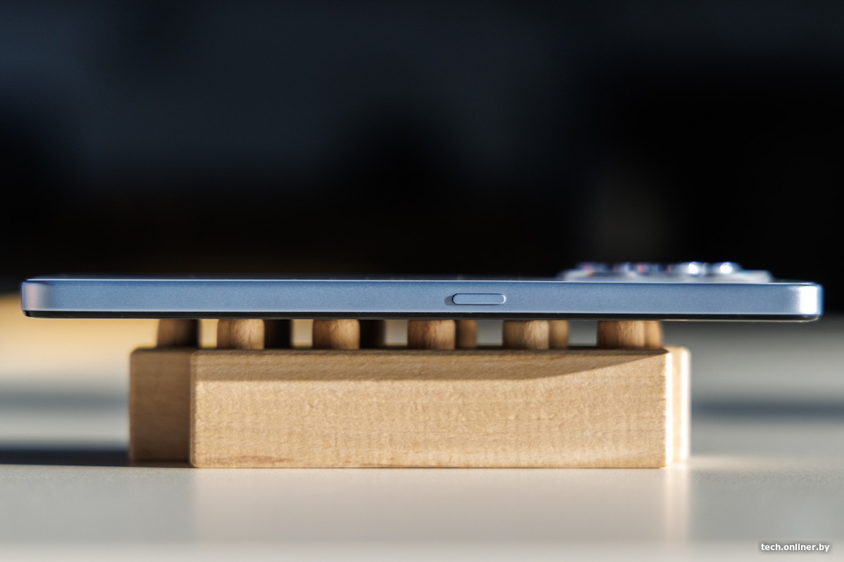 На правом торце размещены качелька громкости и кнопка включения питания, в нее же встроен сканер отпечатков пальцев. В том, что удобнее — сканер в экране или кнопке, — много субъективного, к тому же это вопрос привычки. Я смартфон держу в левой руке, и тянуться к сканеру безымянным или указательным пальцем бывает неудобно; кроме того, кнопка тонкая, а потому нужно «прицелиться», чтобы он сработал с первого раза.