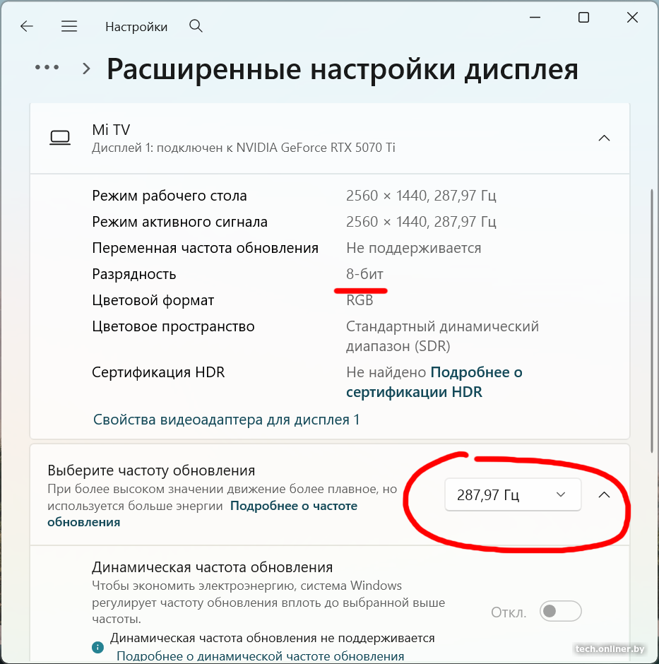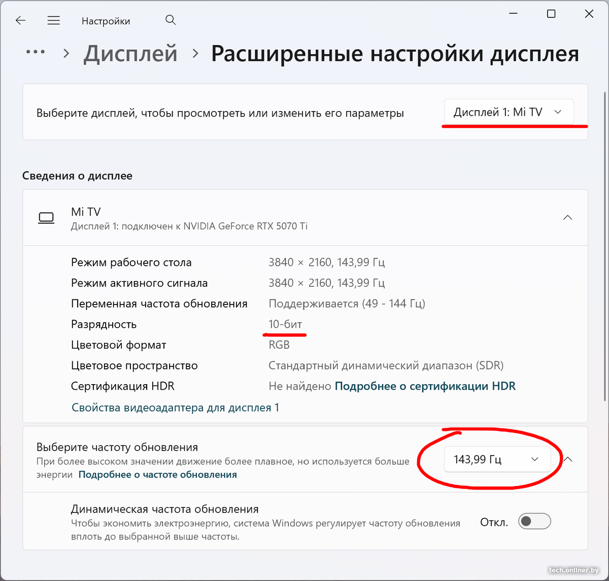 Третий порт этой технологией не оснастили — он поддерживает максимум 60 Гц при 4K и глубину цвета до 8 бит.