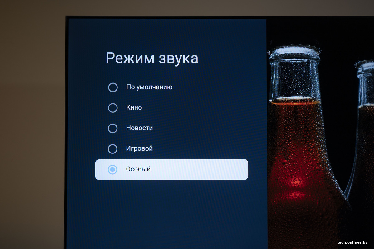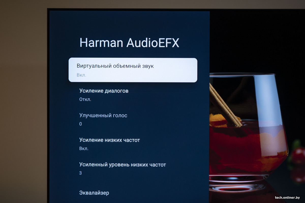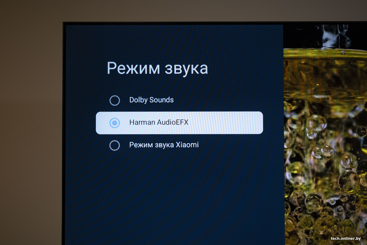 В телевизоре доступно три профиля звука: «Dolby Sounds», «Harman AudioEFX», и «Режим звука Xiaomi». Каждый из них при активации имеет собственные дополнительные режимы и детальные настройки эквалайзера.