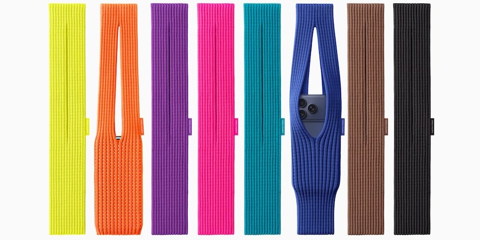 Apple представила iPhone Pocket — это чехол для iPhone в виде вязаной сумки, сделанный в партнерстве с японским брендом Issey Miyake. Сообщается, что этот аксессуар был вдохновлен концепцией «‎куска ткани», а изготовлен из трикотажа с помощью 3D-вязания. В некоторых магазинах Apple Store он появится 14 ноября.