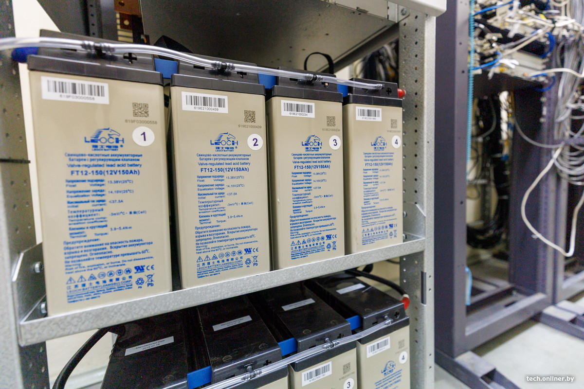 Тут же размещена система преобразования напряжения с 220 на 48 вольт — при таком напряжении работают все операторские станции. Рядом — резервные аккумуляторные батареи, которые обеспечат питанием станцию в случае отключения основного электричества, поэтому объект продолжит работать, даже если в районе пропал свет. Также в аппаратной размещены кондиционеры, поддерживающие оптимальную температуру для функционирования оборудования.