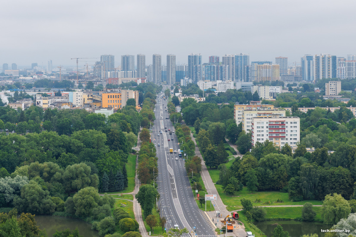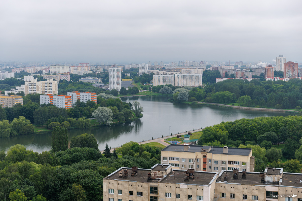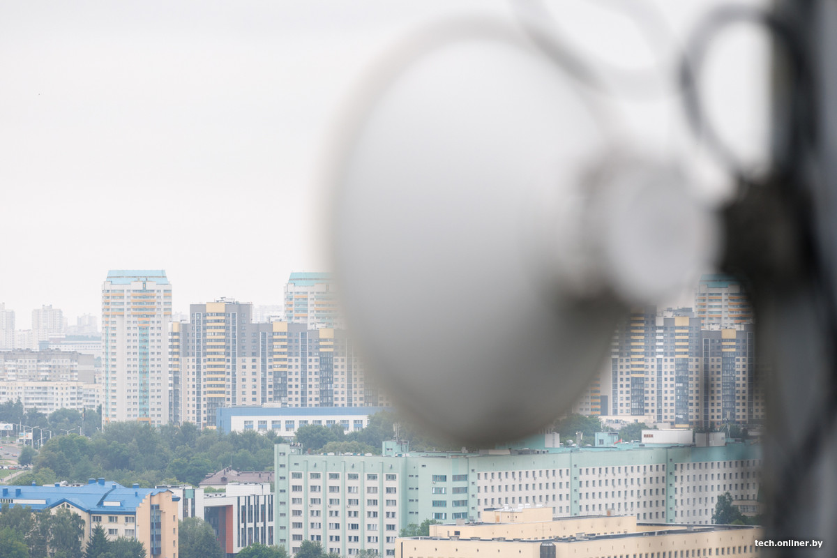 Встречаемся мы с представителями цифрового оператора life:), которые предоставили нам возможность заглянуть в закулисье мобильной связи в значимом месте. Это строение — настоящий памятник советской архитектуры, где некогда располагался НИИ почвоведения и агрохимии Академии наук Беларуси. 16-этажное здание теперь в основном сдается под офисы, а на крыше расположено множество антенн, передатчиков и прочего важного оборудования. А с высоты открываются прекрасные виды на Курасовщину, «Минск-Мир» и другие районы столицы.