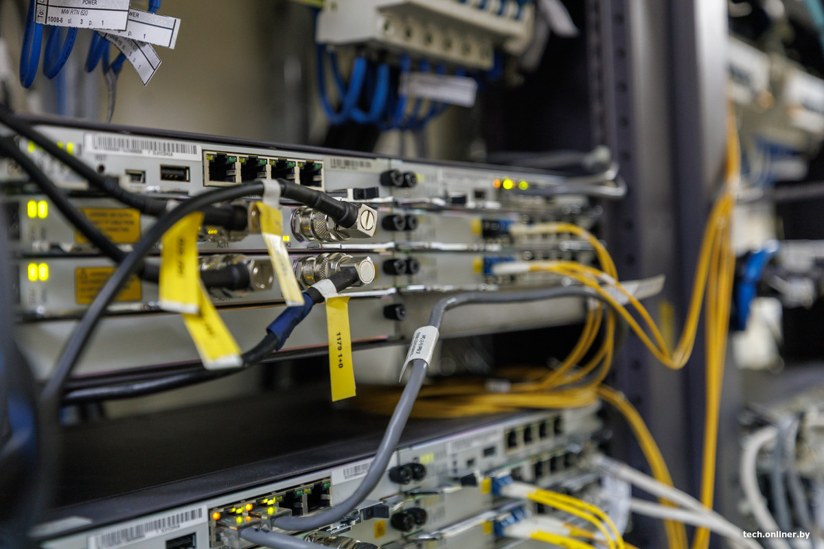 Далее мы спускаемся с крыши в помещение, куда ведут кабели от антенн, — аппаратную. Здесь находятся «мозги» всего объекта. В специальных контейнерах размещено оборудование, которое обеспечивает работу антенн, — отдельно для секторных и отдельно для антенн радиорелейной связи.