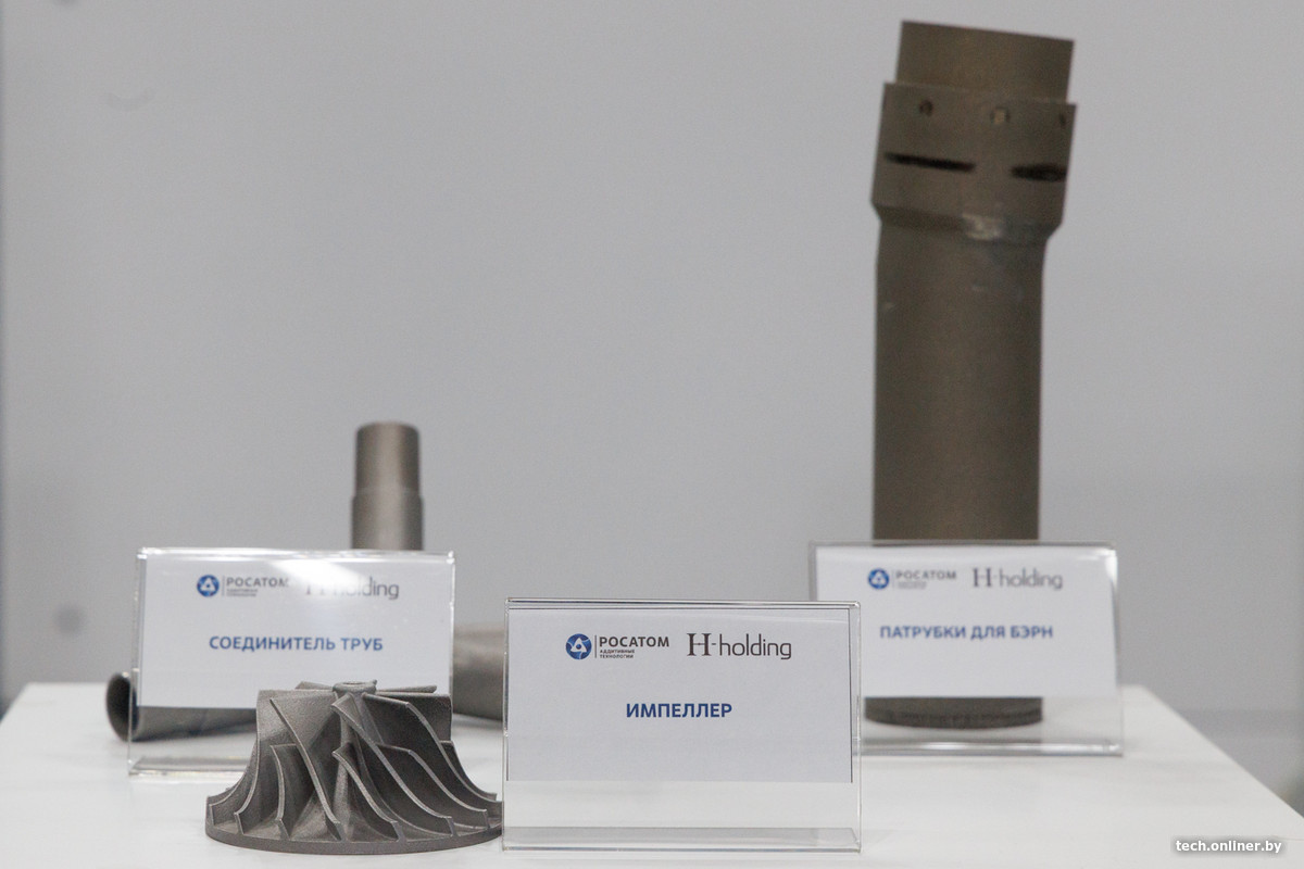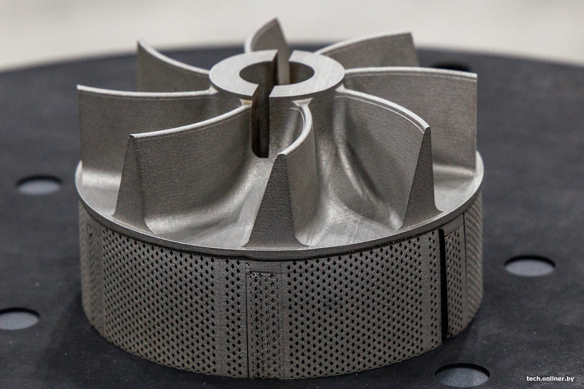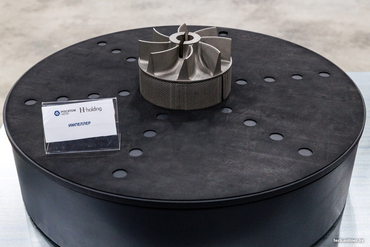 Среди представленных образцов продукции — деталь, напечатанная на 3D-принтере для нужд Государственного производственного объединения электроэнергетики «Белэнерго» — предвключенное колесо конденсатного насоса. Отмечается, что ранее этот компонент нужно было импортировать.