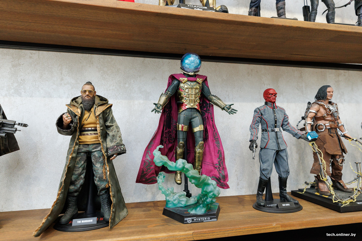 На полках белоруса притаились персонажи из самых разных фильмов Marvel. Есть тут как ключевые персонажи этой вселенной вроде Капитана Америки, Доктора Стрэнджа и Таноса, так и второстепенные, но обаятельные герои вроде Ртути, Красного Черепа и Мистерио.