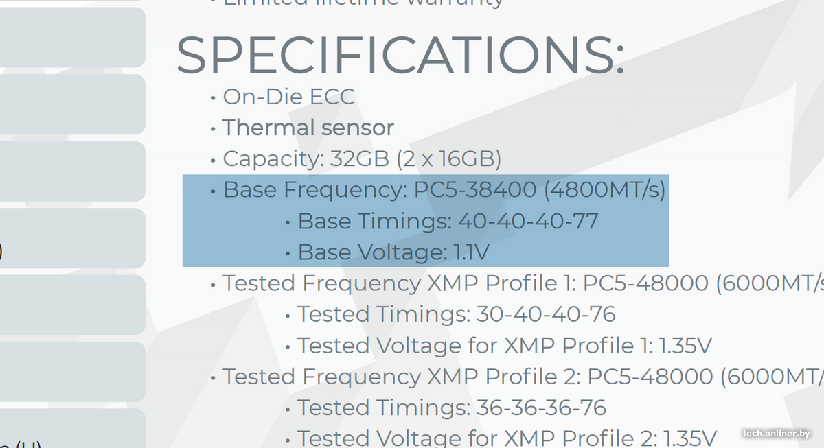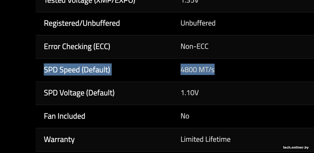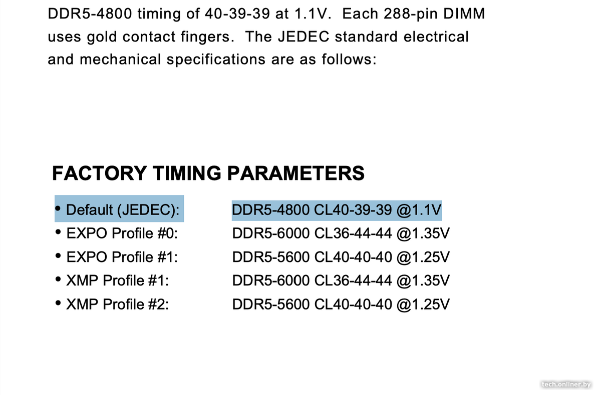 Производители указывают стандартные параметры в официальных спецификациях — именно с ними память функционирует по умолчанию, если не активировать профили EXPO или XMP, о которых мы упоминали ранее.