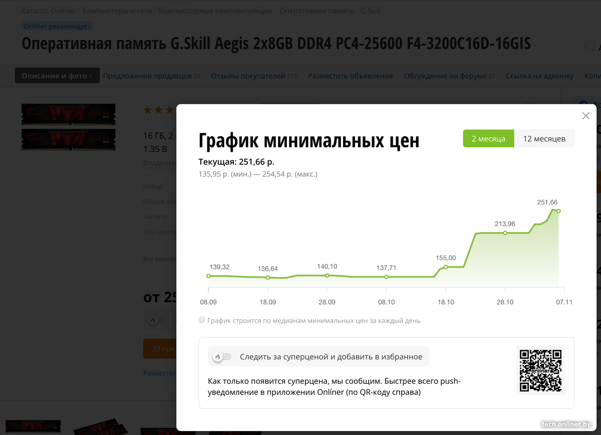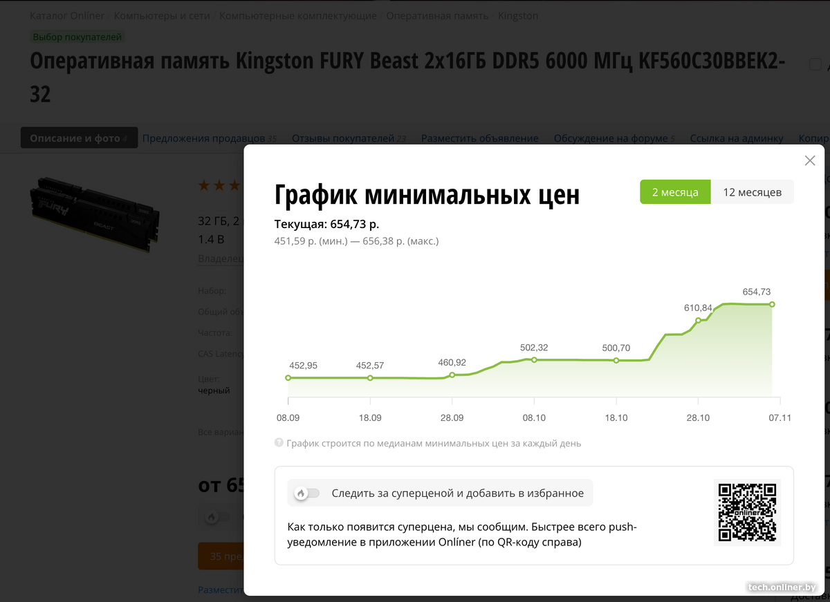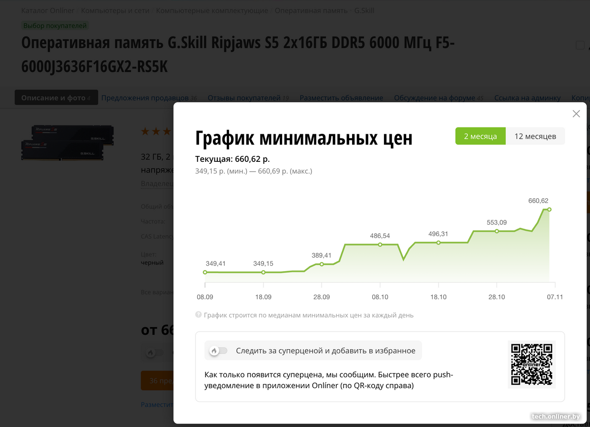 По данным Каталога Onlíner, в октябре 2025 года средняя стоимость оперативной памяти выросла на 35%. Та же тенденция наблюдается не только в Беларуси, но и в Европе и США.