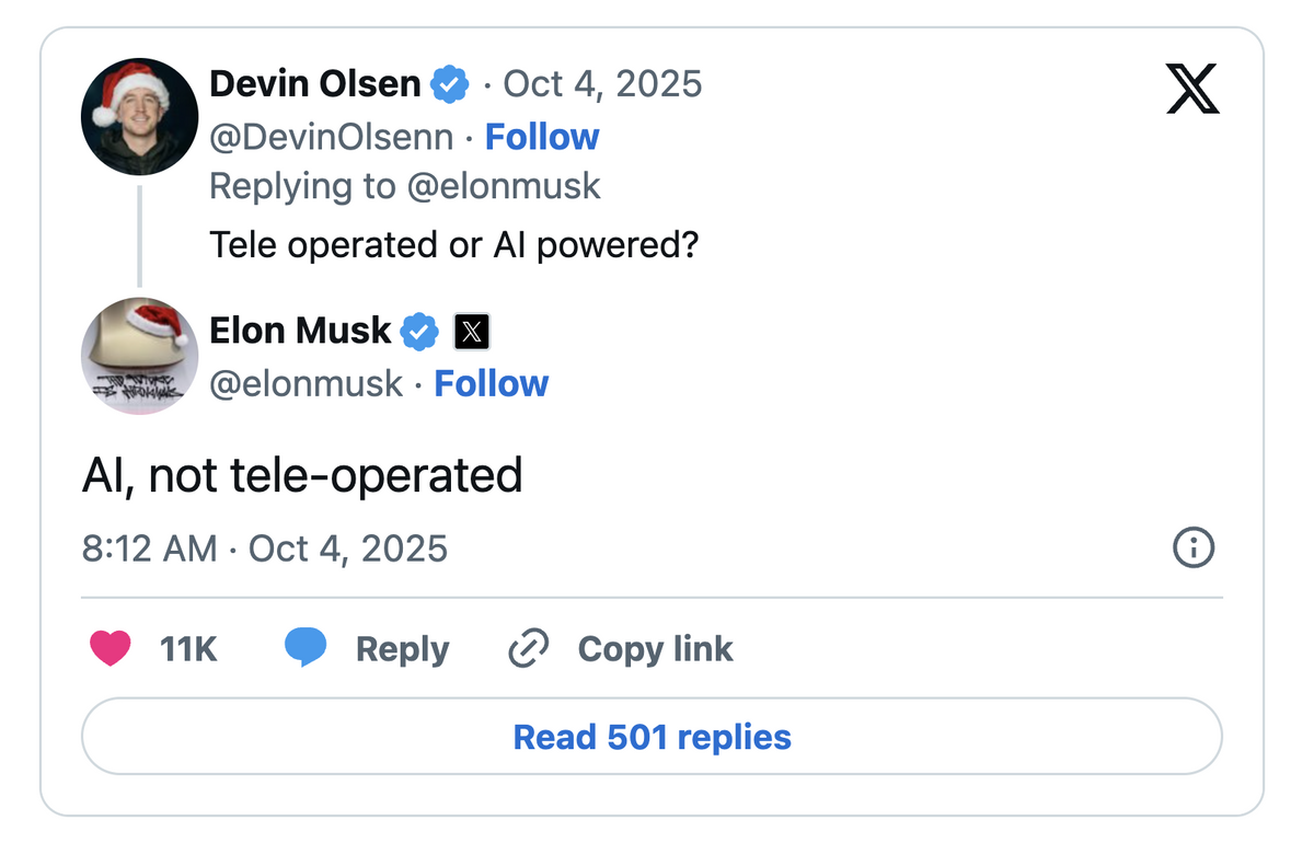 Как сообщают эксперты, этот жест очень похож на методы обучения с использованием виртуальной реальности, которые Tesla использовала в лаборатории, что подкрепляет подозрения о том, что операторы все еще могут управлять роботами во время публичных демонстраций.