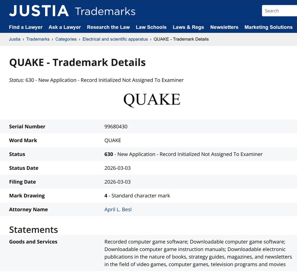 Новая заявка больше связана с игрой, но она все еще может быть обычным обновлением давно существующего бренда, а не признаком того, что новый проект Quake готов появиться на свет.